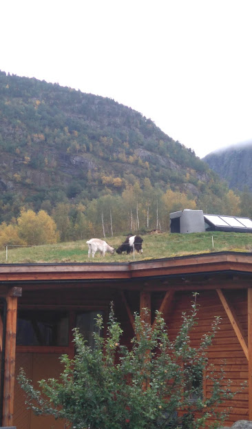 Felix Emil la med eingong merke til at her hadde dei geiter på taket!! Medan storparten av familien såg film, tusla jubilanten og Ariana rundt og såg på dyra i senteret..