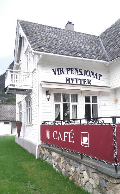 Vi tok ein kjapp stopp i Kinsarvik for å få i oss litt boller og brus. Denne gangen sat vi utanfor Spar butikken og ikkje inne på bensinstasjonen der far måtte feira sin 70-års dag… Så bar det strake vegen til Eidfjord kor vi hadde tinga oss hytter her:
