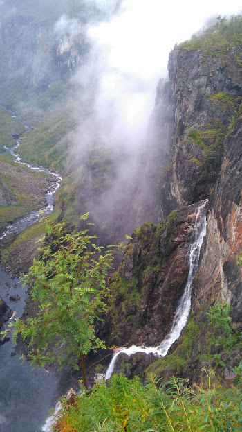 Middagen inntok vi på pensjonatet, før vi tok ein svipptur å kikka på Vøringsfossen og. Litt uheldige med veret, det byrja regna eindel då vi kom dit….