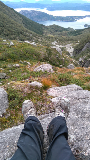 Står opp sånn ca. nokre timar etter det eg er vane med normalt, lagar meg ein kopp te og litt frukost, tar på treningskler og joggesko… Eg hatar å jogga, men det skal jo ikkje vera kjekt å vera permittert, så eg slit meg igjennom ein meter og to. Eller eg tar ut på fjelltur – veret har jo ikkje vore så verst den siste halvanna veka.