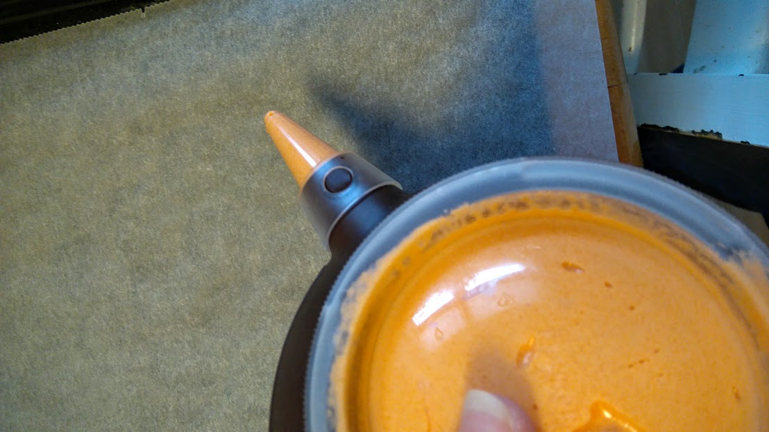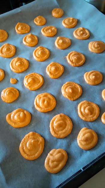 Og eigentleg så spela det ingen trille kva sprøyte eller tut eg brukte i dag, for eg skjøna jo med eingong at denne røra ikkje var heilt slik ei makronrøra skal vera. Eg kunne lika så godt ha klaska det på brettet med skei. Istadenfor fine, runde makronar, såg mine ut som slike «ormereir» ein ser på sandstrandbotn når ein badar…