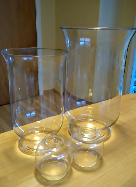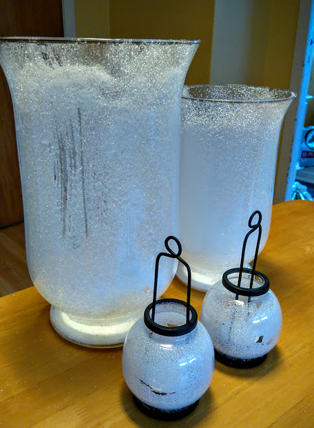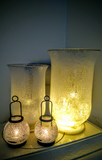 Diverse glas. Her har eg vore på loftet og henta fram nokre stormlykter som har stått og samla støv i nokre år + nokre telysstaker.