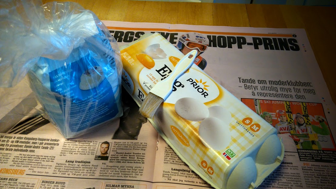 Sukker, eggekvite og ein pensel.
