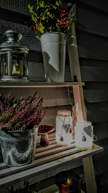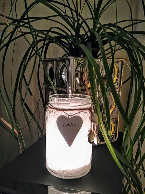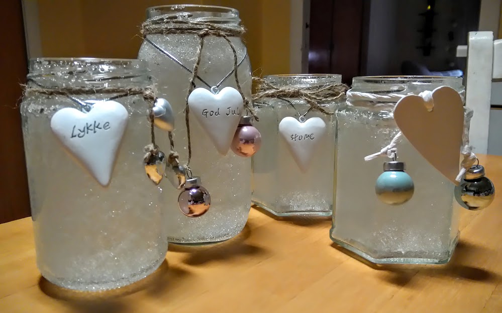 Vil ein gjera litt meir utav lyktene sine er det berre å bruka fantasien. Her har eg brukt div. glas som eg har hengt litt ekstra pynt på: