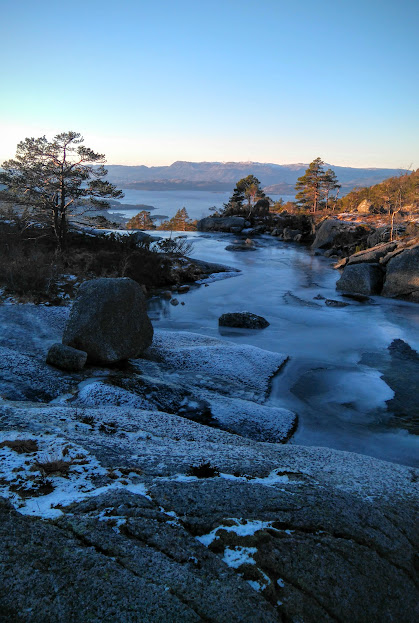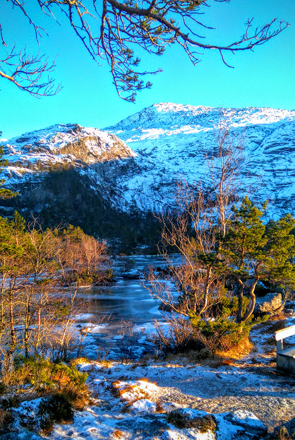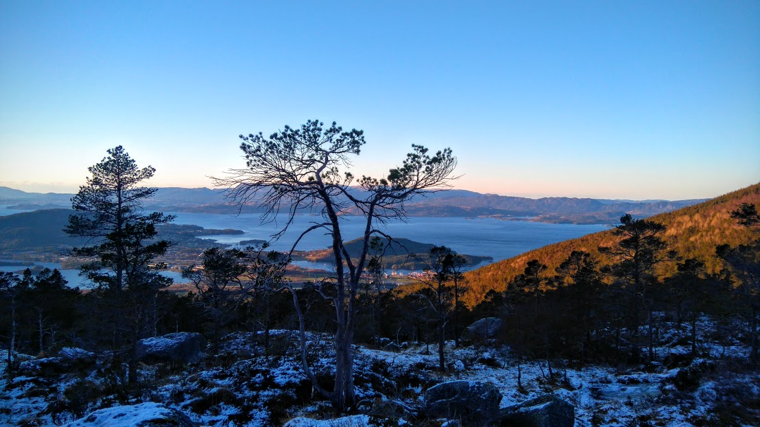 Det nye året har vermessig starta mykje betre en det forrige året slutta 🙂 Kaldt, fint og sol – ja, ikkje på Eik då, men ellers rundt omkring skin sola både her og der…I går bestemte turfylgjet mitt og eg oss for å ta søndagsturen i Husnesfjella. Eg plar gå til Bremstølen i frå Stripo, evt. skogsvegen ovanfor Husnes Motor, men i går bestemte vi oss for å prøva turen i frå Hellandsbrua. Ingen av oss hadde gått denne vegen før, så vi starta turen på nye stiar 🙂