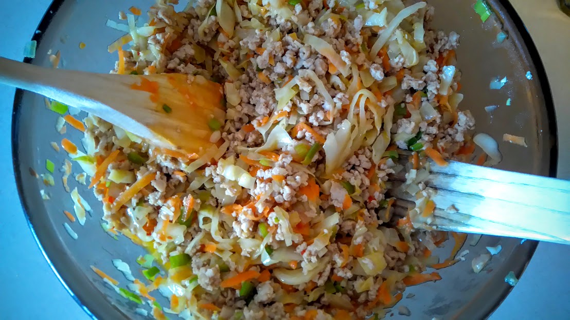 Sånn, då burde du ha ei fin blanding til å laga vårrullar av 🙂