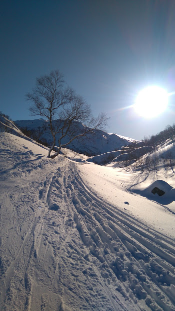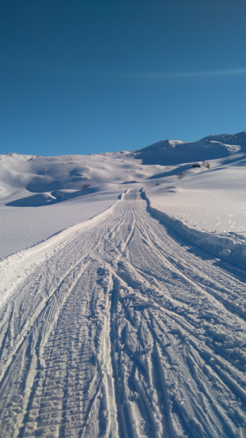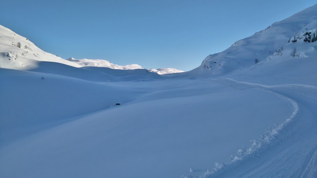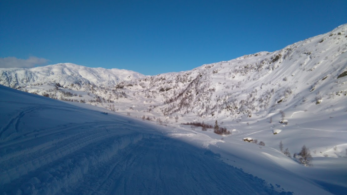 Då vi gjekk her i fjor var det ikkje køyrt opp løype, i går derimot – kjempeflott, oppkøyrt løype heile vegen!