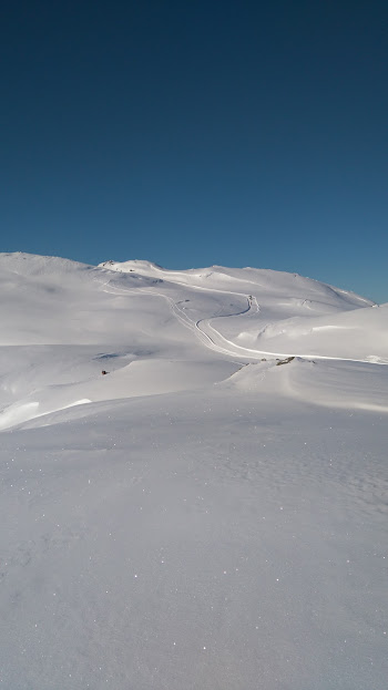 Etter å ha kosa oss både vel og lenge, var det på tide å ta fatt på resten av skituren. Som sagt så skøyna vi inn til venstre kor vi hadde observert at det kom eindel folk opp.