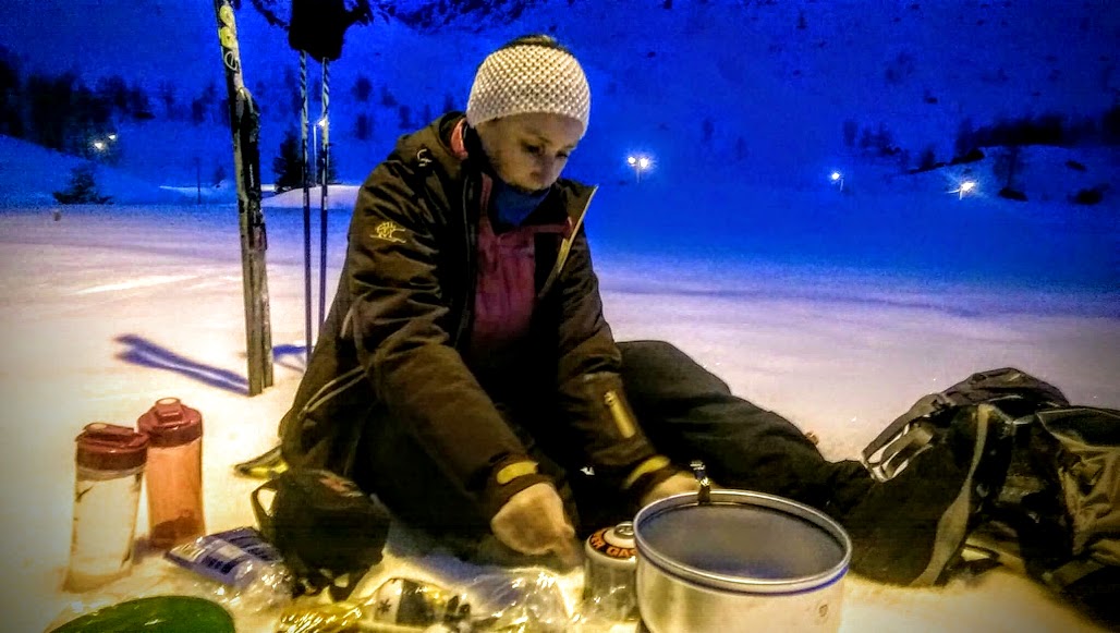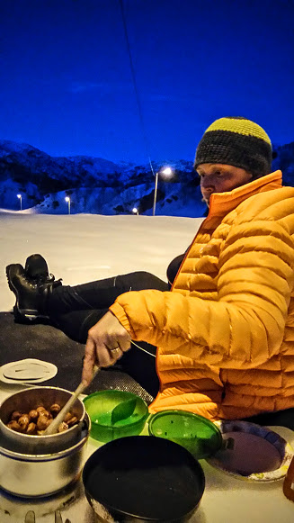 Sjølv om det ikkje går så raskt med oss, og det var sjølvsagt mørkt lenge før vi var halvvegs i løypa, så var vi riktig så nøgd med skituren. Ja, så nøgd av vi bestemte oss for at vi måtte opp onsdagskveld og – og då ville vi rett og slett laga oss middagen/kveldsmaten ute 🙂