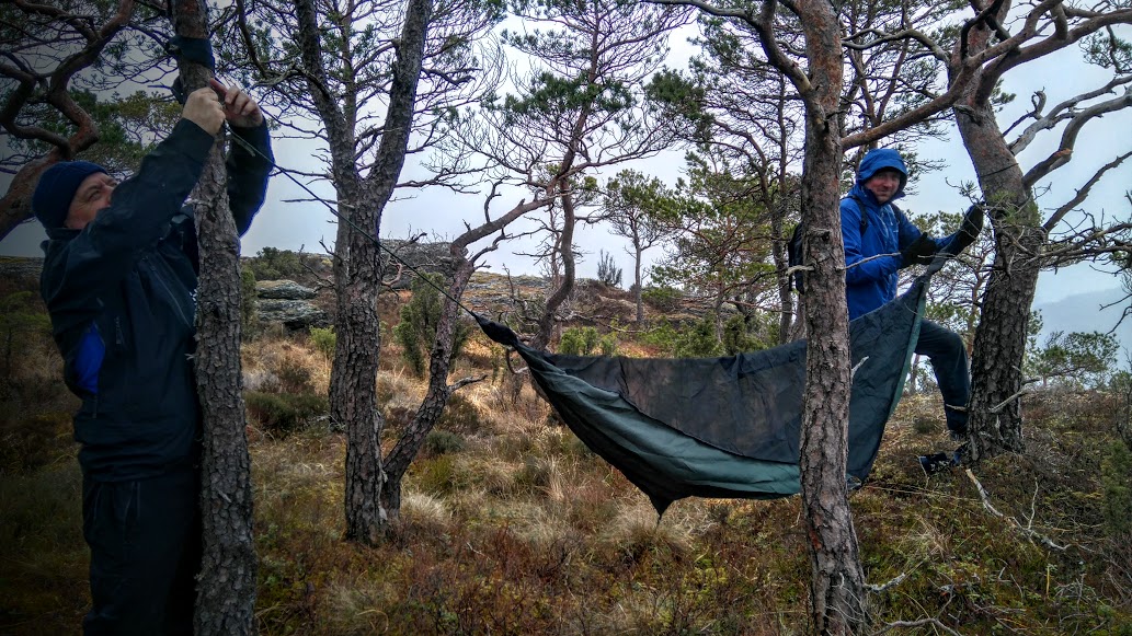 Og det passa jo meg fint, for eg hadde pakka ei aldri så lita påskenøtt i sekken. I allefall kamuflerte eg den som det – i tillegg til å leggja det fram som om vi skulle få testa samarbeidsemnene våres – og då kanskje spesielt mannane. Eg har nemleg kjøpt meg hengekøye, og eg tenkte det passa perfekt å få prøvd den for fyrste gang i dag 🙂 Og istadenfor å klura med det sjølv….