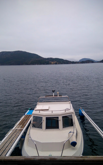 Veret var så som så. Det kom nokre dråpar, og det tetta seg litt til med skodde medan vi var på veg over fjorden. Men vi var godt kledde, så i brydde oss ikkje så mykje om veret.