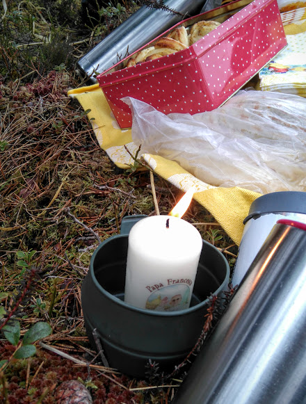 Påskestemning vart det og med påskekyllingar, påskeduk, påskeserviettar og lys med Paven på kjøpt i Roma. Trur det eller ei, men dette lyset brant heile tida sjølv om det var litt trekk. Vi fann ut at «Den Heilage Ande» måtte halda si hånd over det. Egil meinte vel på at det kom til å bli blåst ut av «Han med den dårlege Ånden»….