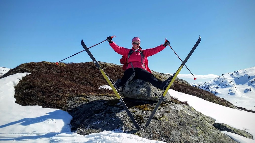Det vårast og det kan vel difor henda at søndagens skitur var den siste på denne sida av sommaren – sjølv om eg faktisk synes det er denne tida det er finast å gå på ski. Men ein er jo avhengig av snø – og den smeltar raskt no om dagen. Det merka Magnhild og eg godt då vi tok runden rundt Reikatindane i går…Det starta så bra – sola skein nesten i frå skyfri himmel, det var varmt, fint føre og vi var full av energi og kunne nesten ikkje venta med å koma oss avgårde opp mot Fagnabotn. Men då Magnhild etter ørten forsøk ikkje fekk skia til å henga på skoa, ana eg ugler i mosen… Då var det berre til å smøra seg med litt tolmod og venta på at redningsmannen, Ivar, skulle koma køyrane til fjells med ski som passa skoa 😉