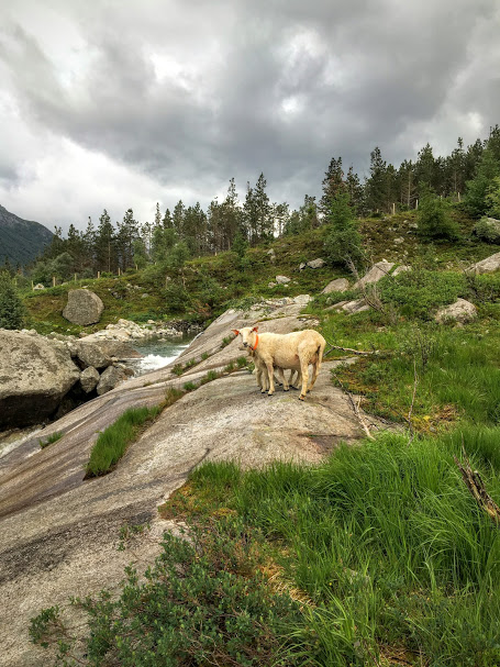Stien fylgde gjerdet oppover eit stykke før vi kom til ei grind, noko vi tok som eit teikn på at her ferdes fleire enn oss. Vi rekna vel med at vi var inne på ein sti som div. fjellklatrarar brukar når dei skal opp til fjellet.