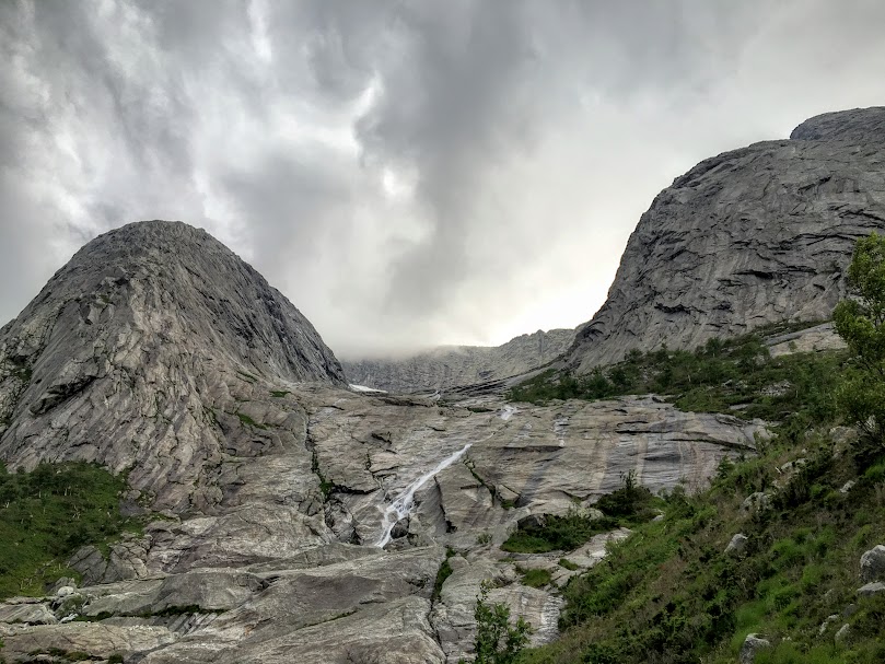 Eg veit ikkje om dette er ein plass det passar seg å gå ut å anbefala folk om å ta turen – for alt eg veit er dette ein plass det er fare for både steinsprang og anna. Og for alt eg veit vil kanskje kjentfolk anbefala at ein har med både hjelm og tau når ein skal opp her – vi er to grønskollingar på det viset. Det var vel det vi innsåg då vi endeleg stoppa – at no fekk nok vera nok.