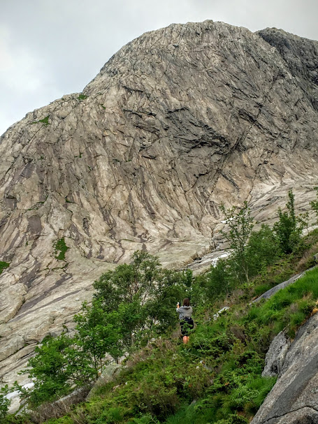 Ann Irene nærmar seg foten av fjellet…