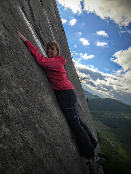 Skreiv eg at vi ikkje er fjellklatrarar?? Det er vel litt feil. Eg vart i allefall veldig inspirert, så når Ann Irene kom tilbake etter å ha fotografert i det vide og det breie, hang eg høgt oppi fjellveggen…