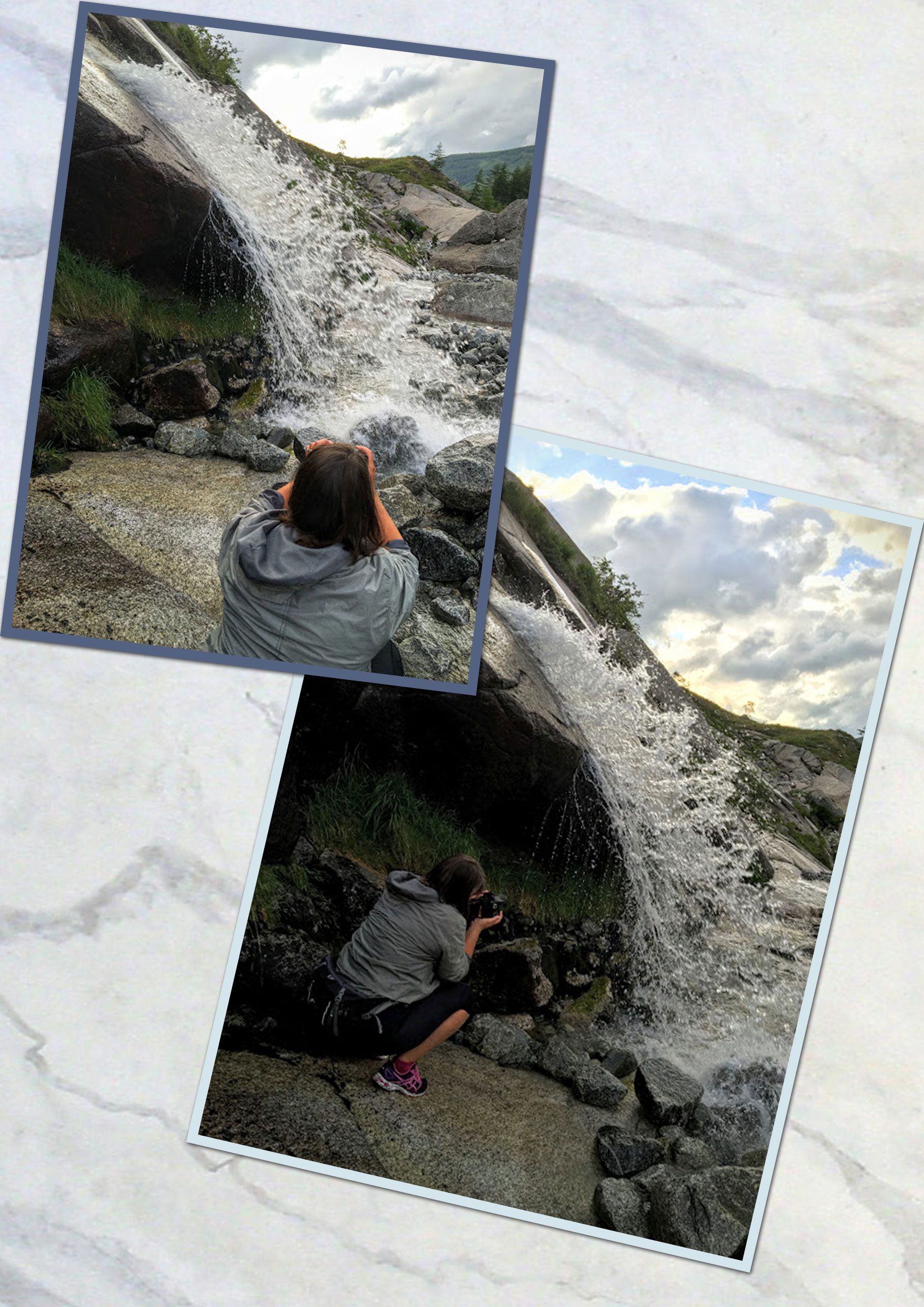No gjenstod det berre å koma seg ned igjen. Det gjekk lettare enn eg hadde trudd, men igjen så måtte vi passa på kvart steg vi tok. Det frista lite å vassa over på andre sida igjen, så vi prøvde å koma oss over på andre sida av fossen lenger nede denne gangen.