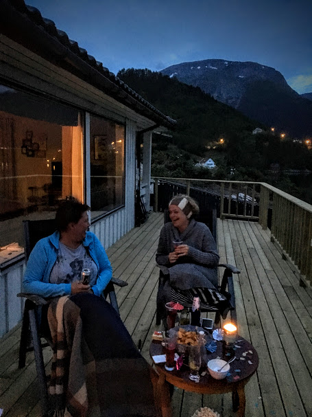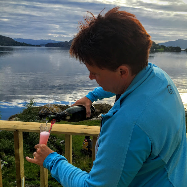 Det kunne vorte ein laaaang kveld om vi berre skulle ha site på den nye, flotte altanen til Magnhild og nippa til drinkar – litt andre aktivitetar høyrer og med..