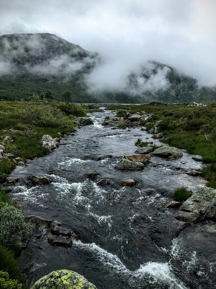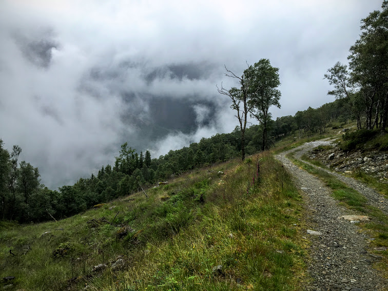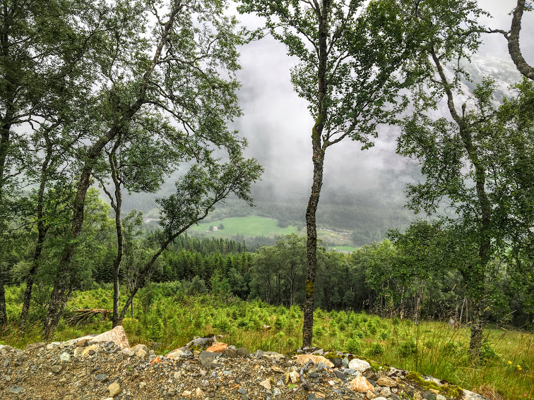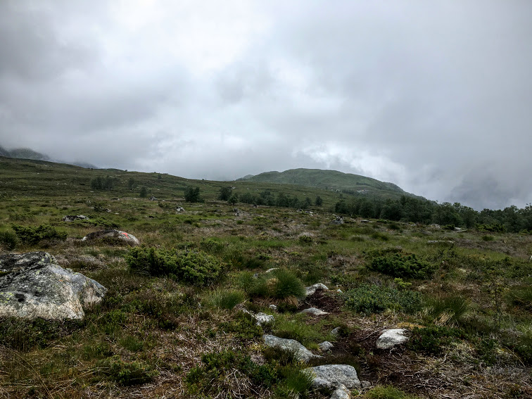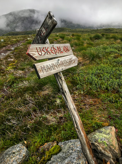 Uskedalen i tåkedotten. Ser surt og trist ut, men dette er altså perfekt turver.