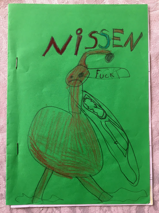 Eit av gullkorna eg kom over vil eg dele her. Inni ein kontaktperm dukka det nemleg opp nokre heimelaga hefter. Eg trur desse må ha blitt laga i samband med eit eller anna forfattarprosjekt – det stod nemleg «Vepsenforlag» håndskrive på nokre av dei 🙂 Og dette prosjektet må dei ha halde på med på skulen, for eg er ganske sikker på at eg hadde huska denne «boka» om eg hadde sett/lese ho tidlegare: