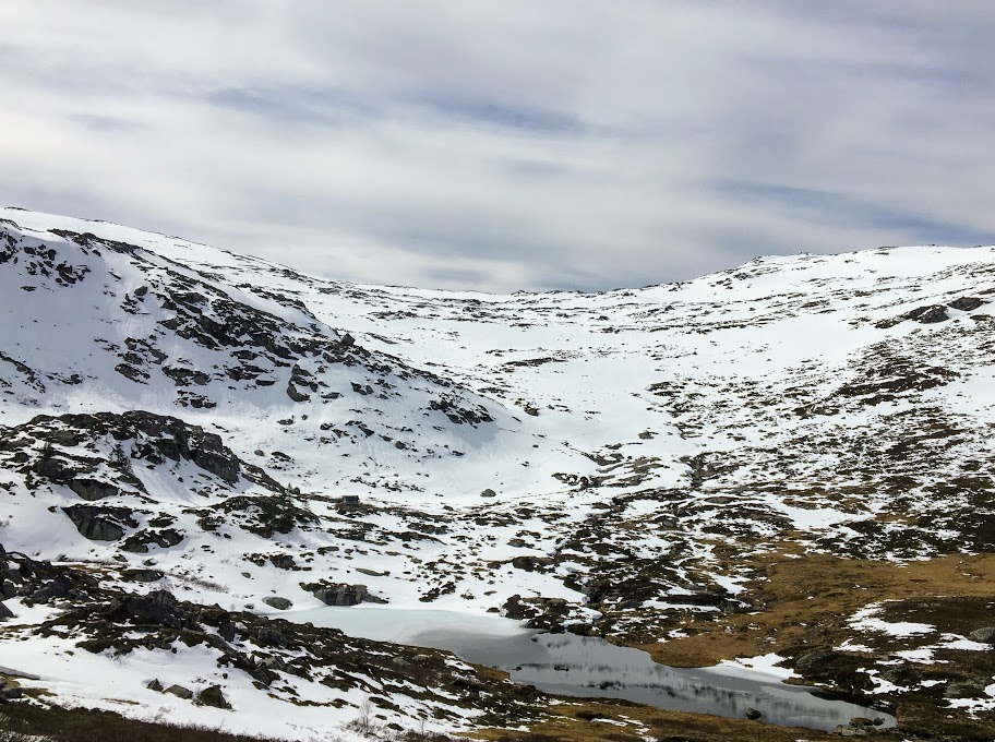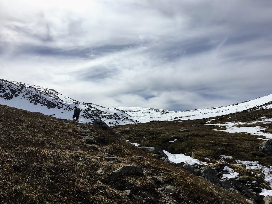 Så la vi i veg igjen. Det gjekk forsåvidt greit å gå vidare – eg distraherte meg sjølv med å prøva å finna omvegar frå snøefonnene, og då gløymte eg litt at eg var lei 😉