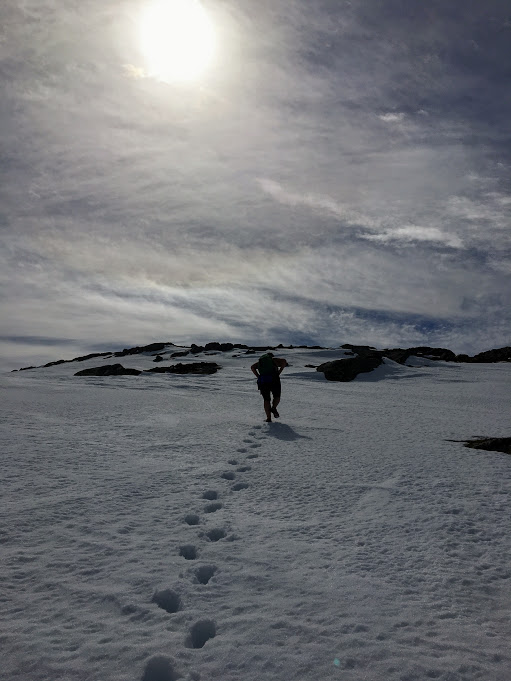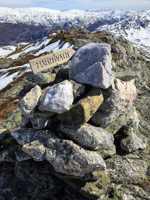 Og heile denne turen for å sleppa å gå 10 skritt i ei snøfonn og eit lite stykke med bratt sti… Nokon andre som har valgt og gå over eit heilt fjell for same grunn???