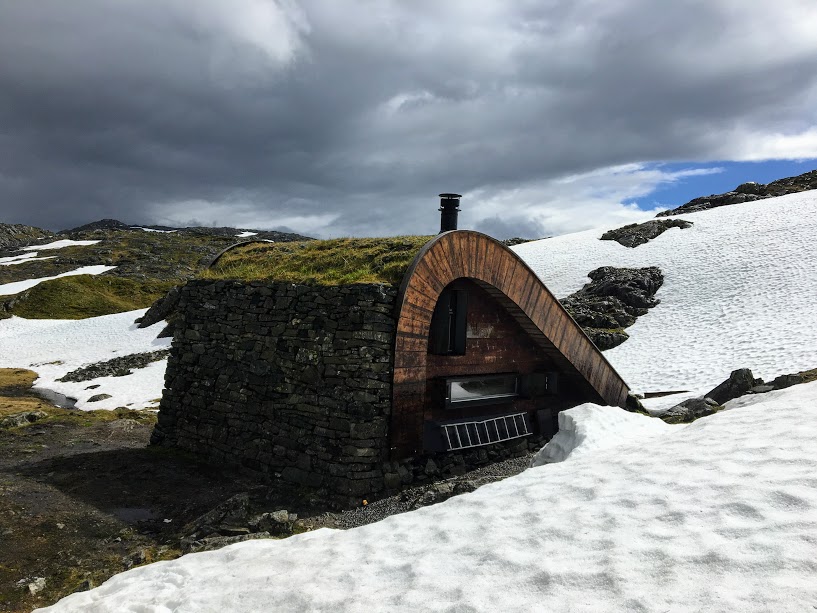 Sjå kor tøff! Tenk at det finnes ei slik hytte langt inn på fjellet – teikna av Snøhetta! Det er noko av det kulaste eg har sett på fjellet 🙂