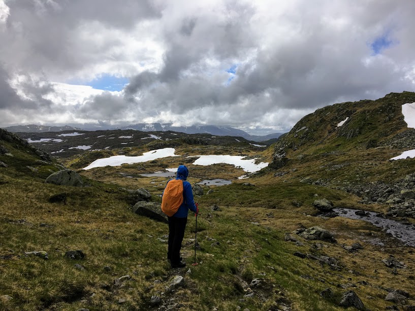 I sekken hadde eg pakka kler for alle årstider. Eg lo litt av meg sjølv når eg prøvde å lokalisera eit par vottar eg kunne ha med meg – noko eg ikkje klarte. Men det er jo tross alt 24.juni i dag, så eg rekna med det skulle gå fint utan 🙂 Det hadde ikkje gjort noko om eg hadde hatt dei med….