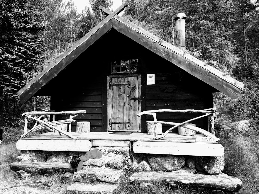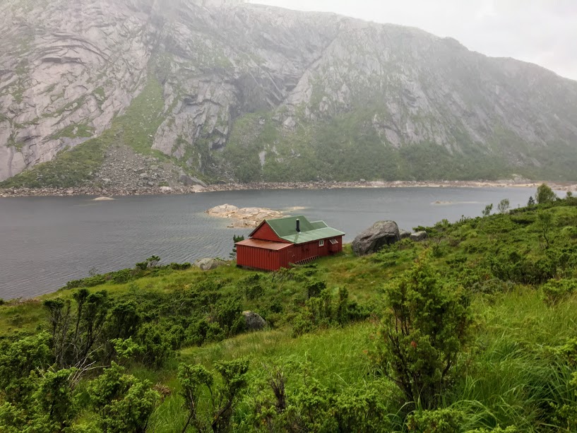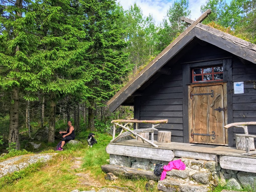 Vi kom ned til hytta, våte som kråker frå topp til tå, og kunne skriva oss inn i turbok nr. 3 så langt på turen.