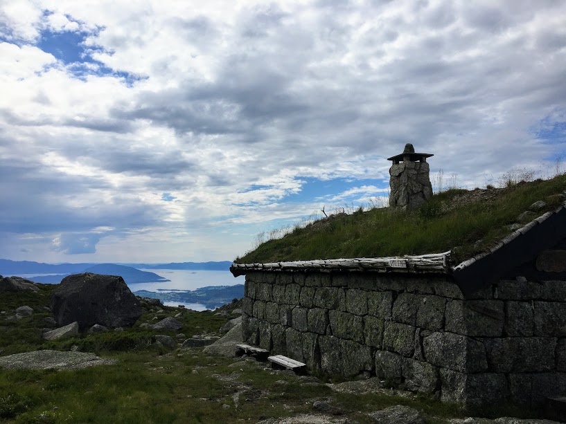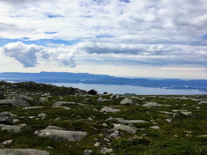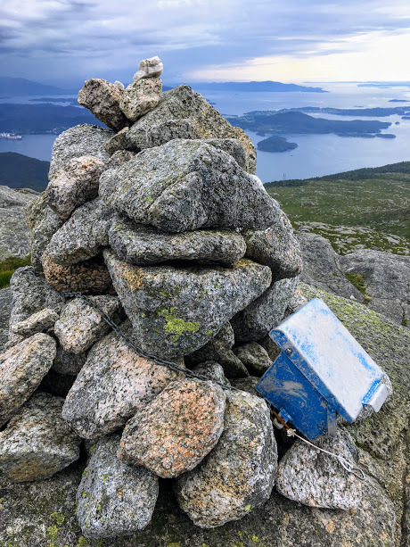 Det var godt å få sitja ned å kvila litt her. Det var litt vind her oppe, så sakte, men sikkert, byrja eg å få tilbake normal temperatur i øverste etasje. 3 andre turgåarar dukka og opp – dei klaga og på varme, floger og klegg, så eg skjønar eg var heldig som berre hadde slite med varmen..