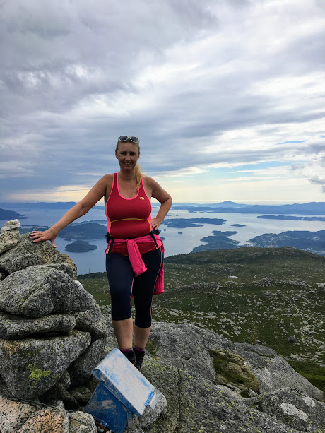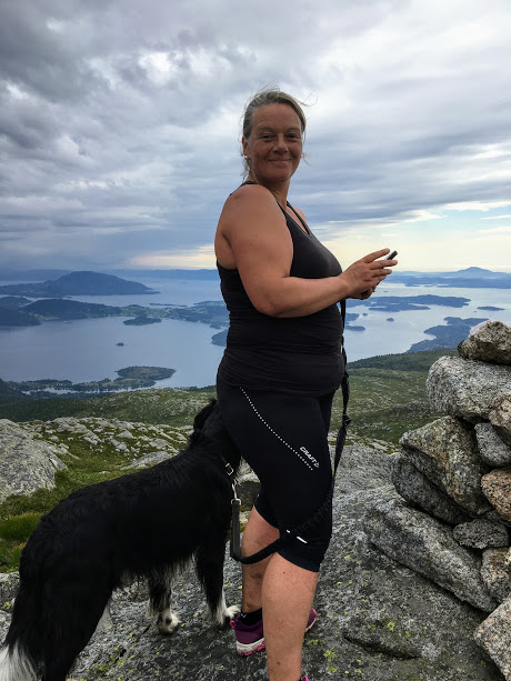Sjølv om vi var både varme og svette allerie her, var det jo ikkje snakk om å snu. Eg slit veldig med å gå til fjells i varmen. I dag syntes eg det gjekk ganskje greit å gå sånn kondismessig, men i toppen vart eg heitare og heitare. Hovudverken haldt seg heldigvis unna, men det føltes som om heile knotten skulle eksplodera av varme. Medan eg sleit med dette, var Ann Irene si utfordring floger og klegg… Eg såg ikkje ei floga eller ein klegg for min del, men eg var likevel ikkje misunneleg på ho 😉 Så medan ho sat opp farten for å koma seg utav skogen å bli kvitt desse insekta, sakka eg av for å sleppa å svima av – eg var rett og slett rett eg skulle få solstikk.