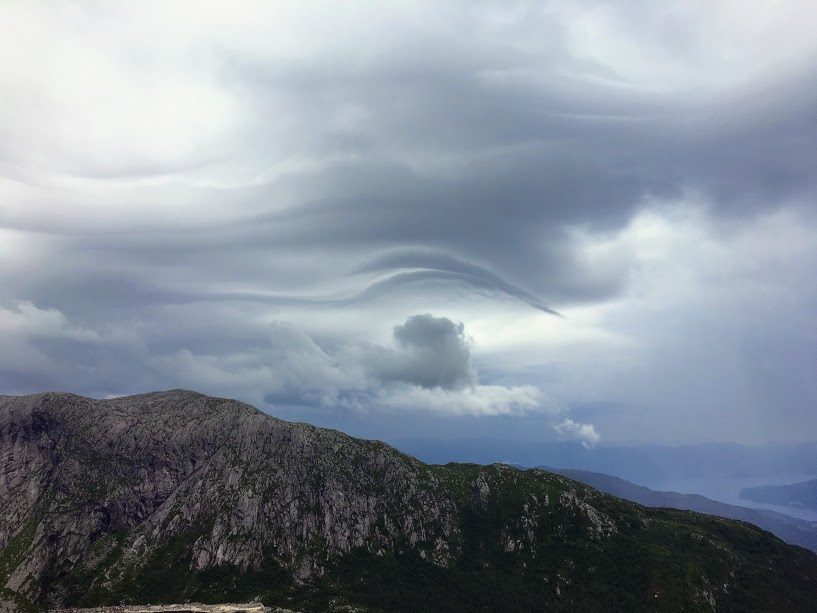 Vi såg jo kva ver som seig innover… Stilige skyer over Horgjo, forresten 🙂