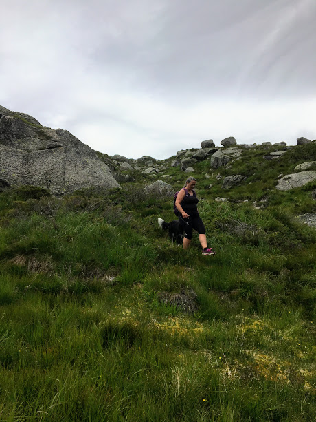 Det var litt ulendt, med mykje tuer og steinar, så vi måtte sjå kor vi trødde ned.