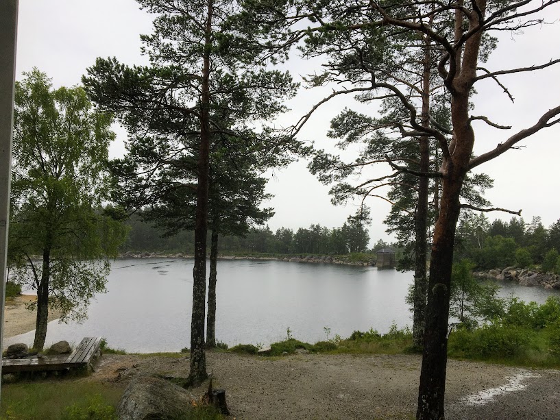 No hadde eg fått ned temperaturen igjen – eller kanskje den framleis var noko høg – for eg sa ja til det. Men det var uaktuelt å fortsetja til Mjelkhaug. Det hadde eg hverken kler eller nista nok til – og vi såg at det hadde byrja å regna i Skånevik….
