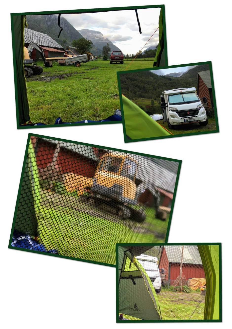 Men sama kor mykje vi kikka og såg, så fann vi ingen plass. Til slutt var det ein arbeidskollega av Jorunn som berga oss: «Dåke kan stilla dåke opp på hos meg – bakken er nyslått óg». O» Store lykke – endeleg ordna det seg 🙂 Og så bar det avgårde inn att mot Austrepollen – he-he.