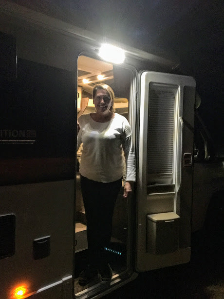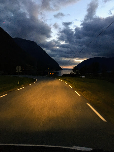 ….det byrja å bli mørkt, så vi burde jo snart finna oss ein plass å stoppa.
