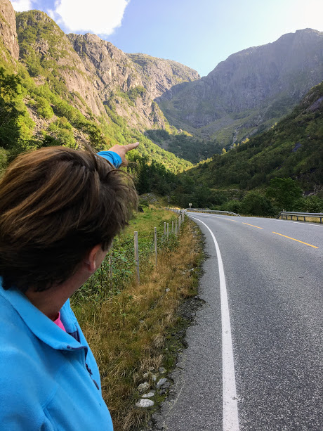 Det vart etterkvart avklara at det berre var vi to som kom til å gå tur. Jorunn byrja peika bak oss og snakka om Hardingaskaret. Eg må ha hatt dogg på kontaktlinsene, for eg kikka rett opp ei steinrøys ovanfor Folgefonntunnelen og tenkte, «kvifor ikkje?».
