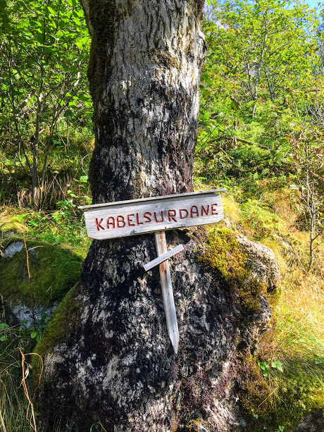 Kabelsurdane! Uff, litt pinleg dette her. Ingen av oss visste kva «Surdane» betydde…. Dette diskuterte vi både på opp og ned. Faktisk så undra vi oss så mykje at då vi traff gårdseigaren igjen etter endt tur, måtte vi spørja han kva «Surdane» var for noko? Han kunne jo ikkja anna enn le av oss: «Kabels urane??» Det var jo så innlysande at eg skjønar ikkje kvifor ingen av oss hadde lest namnet slik. Ja, ja, vi fekk oss ein god latter. Til vår unnskyldning må vi seia at vi aldri har kalla ei ur for urd 🙂
