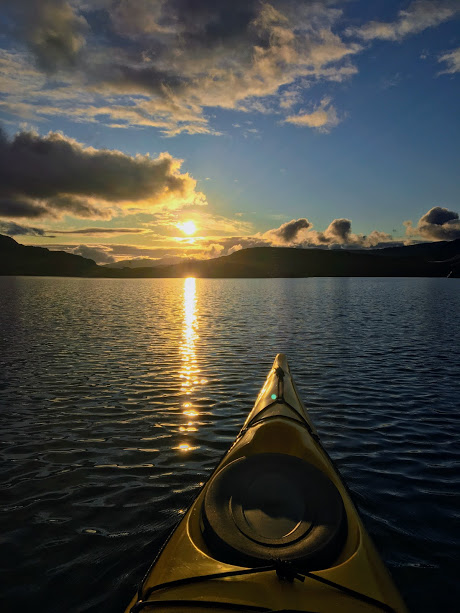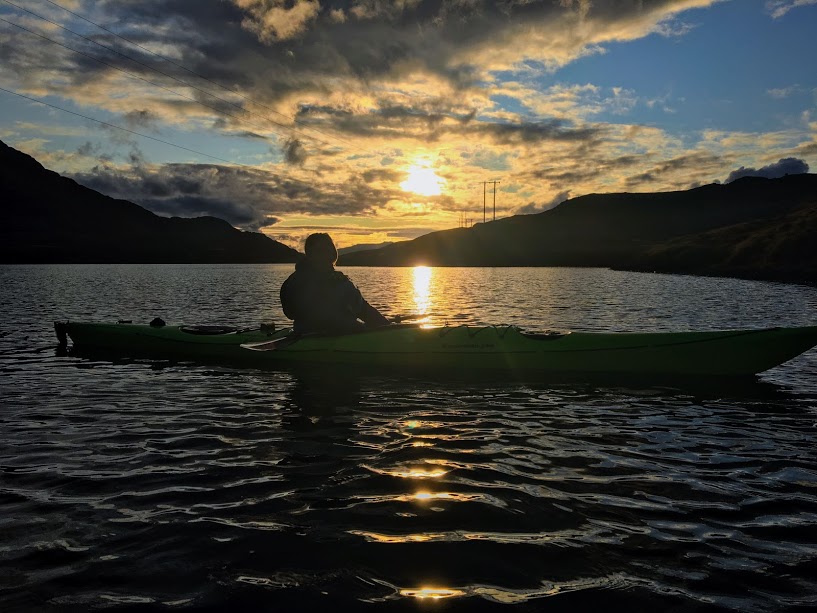 På veg mot den andre sida av vatnet – i solnedgang 🙂