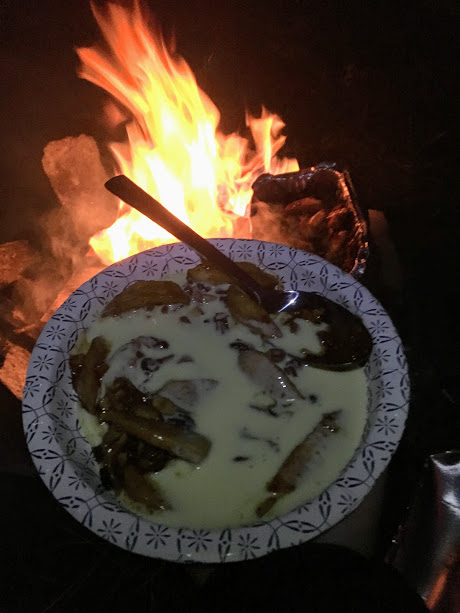 Så så sat vi her igjen og kikka inni flammene medan vi grilla kvar vår pølse 🙂 Vi bør jo snart bli sponsa av Gilde no 😉