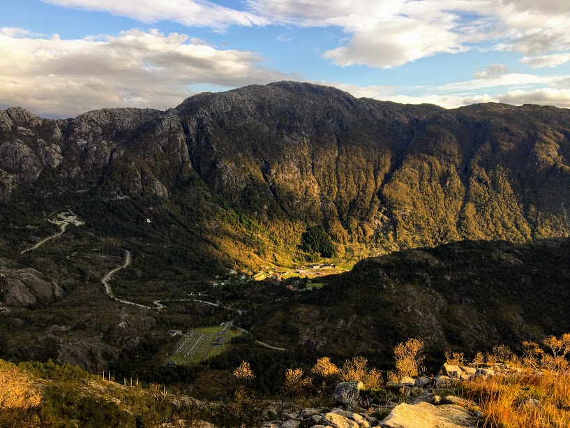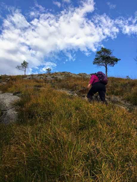 Sjølv om eg aldri hadde vore her før, trong det ikkje mykje fantasi til for å skjøna kor vi kom til å enda når vi klauv opp fjellet her…
