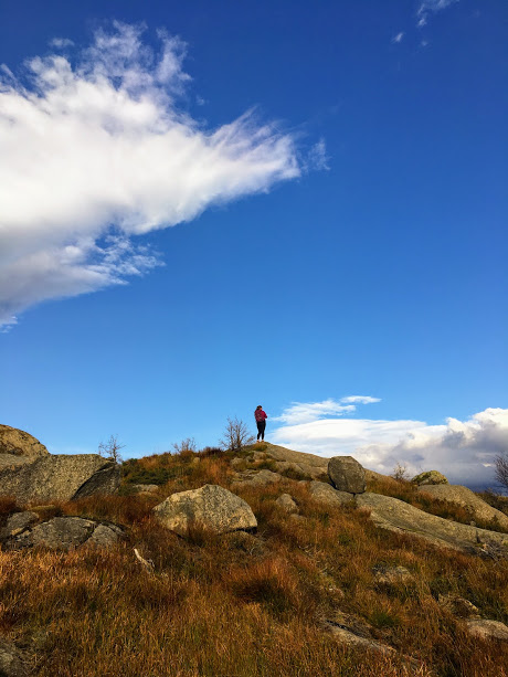Okkesom, uansett kva det var som knurra, bjeffa eller brølte – vi fekk litt fart på oss nedover stien.