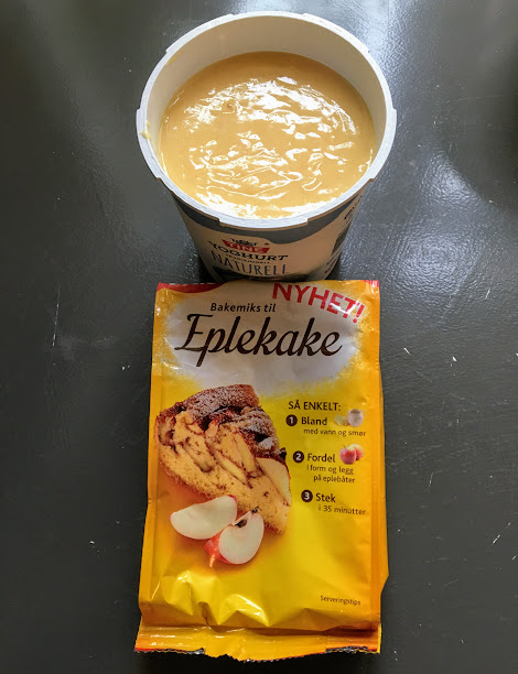 ….og hadde mekka i saman ei eplekakerøra. Ok, så juksa eg litt, men det må no vera lov av og til 😉 Denne Tororøra passa perfekt oppi ein tom yoghurtboks, så då var ho lett å få med seg i sekken.