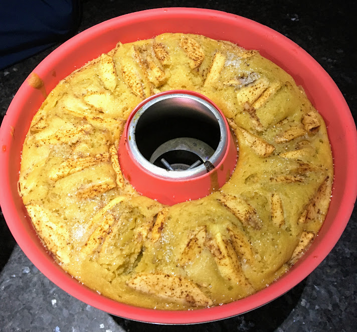 Eplebitar blanda med kanel og sukker hadde eg og sjølvsagt med – det blir ikkje eplekaka utan epler 🙂