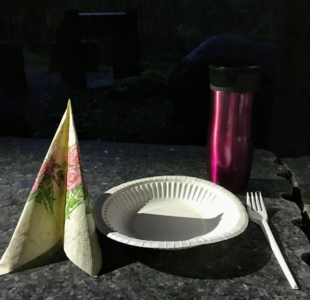 Det er jo ikkje noko stor park, dette her, så vi måtte ikkje gå så langt før vi fann ut kor vi ville slå kakebakeleir. Vi fann ein plass med tak, bord og benker.