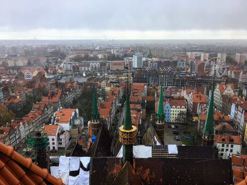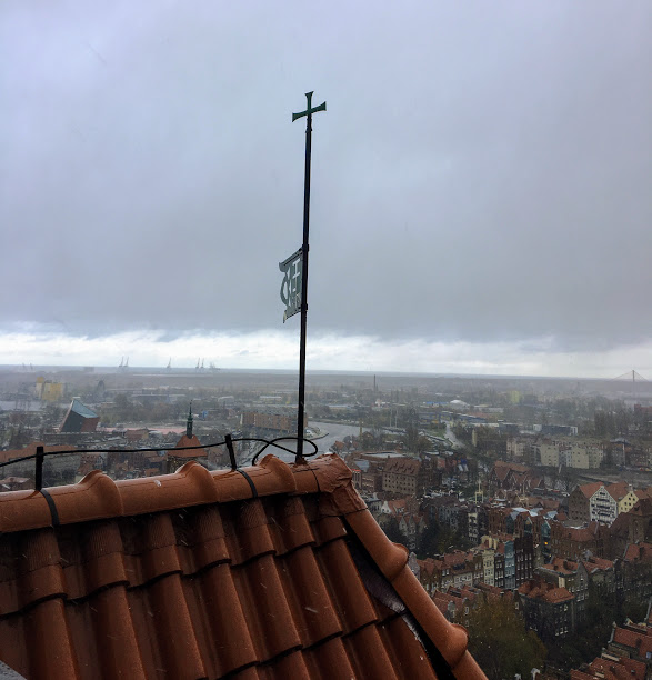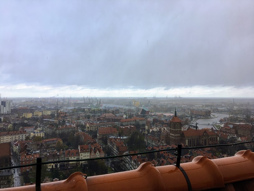 Men då måtte vi jo finna på noko anna enn å springa i butikkar. Vi delte oss litt opp, og nokon av oss bestemte at vi ville kikka på Mariakyrkja. Dette er mest sannsynleg den styrste mursteinskyrkja i verden! Vi visste at det skulle gå an å gå opp i tårnet og få ei flott utsikt over Gdansk. Veret i Gdansk var ganske surt og kaldt og på veg mot kyrkja byrja det å regna – ganske så vannrett! Eg tru aldri eg har gått så raskt til kyrkjes før….
