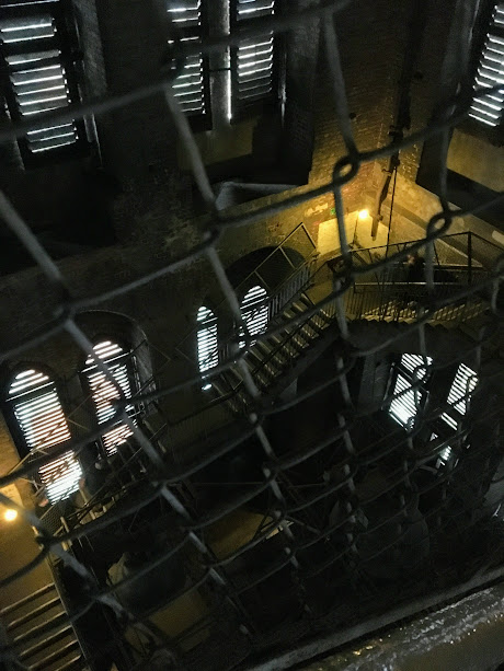 Men no kunne vi i allefall betala for å gå opp i tårnet 🙂 Fyrstemann satt avgårde i ein forykande fart opp trappene, vi andre kom heseblesande etter. Innimellom står det kor mange trappetrinn ein har gått. «170 trappetrinn, kor mange er det eigentleg?» sa, ein. «Eg trur det var 200 eit eller anna», svara ein annan. «Eg har høyrt over 400», peip det frå bakarste hold. «FIREHUNDRE?? SLAKKA PÅ FARTEN! SLAKKA PÅ FARTEN!». Det visste seg at sistemann hadde rett. Kyrkjetårnet er 78 meter høgt og det er 405 trappetrinn til toppen. Det var ein fesen gjeng som ramla ut på taket…