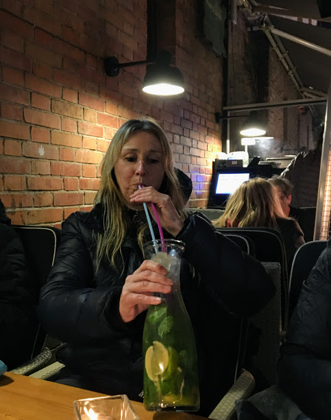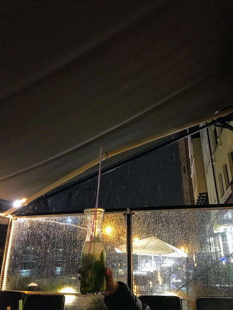 Og medan vi gjekk langs elva på veg heim mot hotellet, var der ei lukka (??) at ein av oss vart tissetrengt akkurat i det vi gjekk forbi eit skilt det stod «Mega mojito» på 😉 Og vi var ikkje meir enn komen inn under tak før det øsepøste ned igjen. Så her måtte vi jo berre bli ei stund..