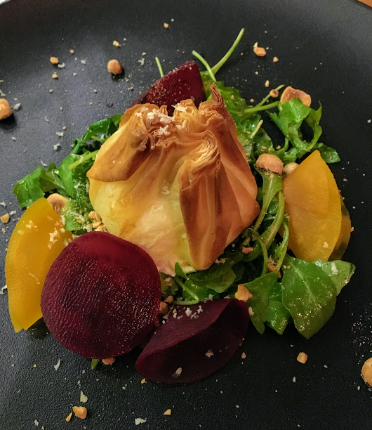 Forseggjort forrett – innbakt geiteost. Mmmm…den var også god 🙂